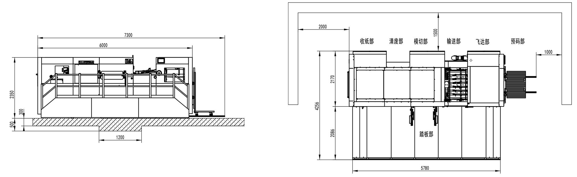 | 整機尺寸 | 7300×4256×2350mm(L×W×H) (長含預上紙軌道;寬含腳踏板) |